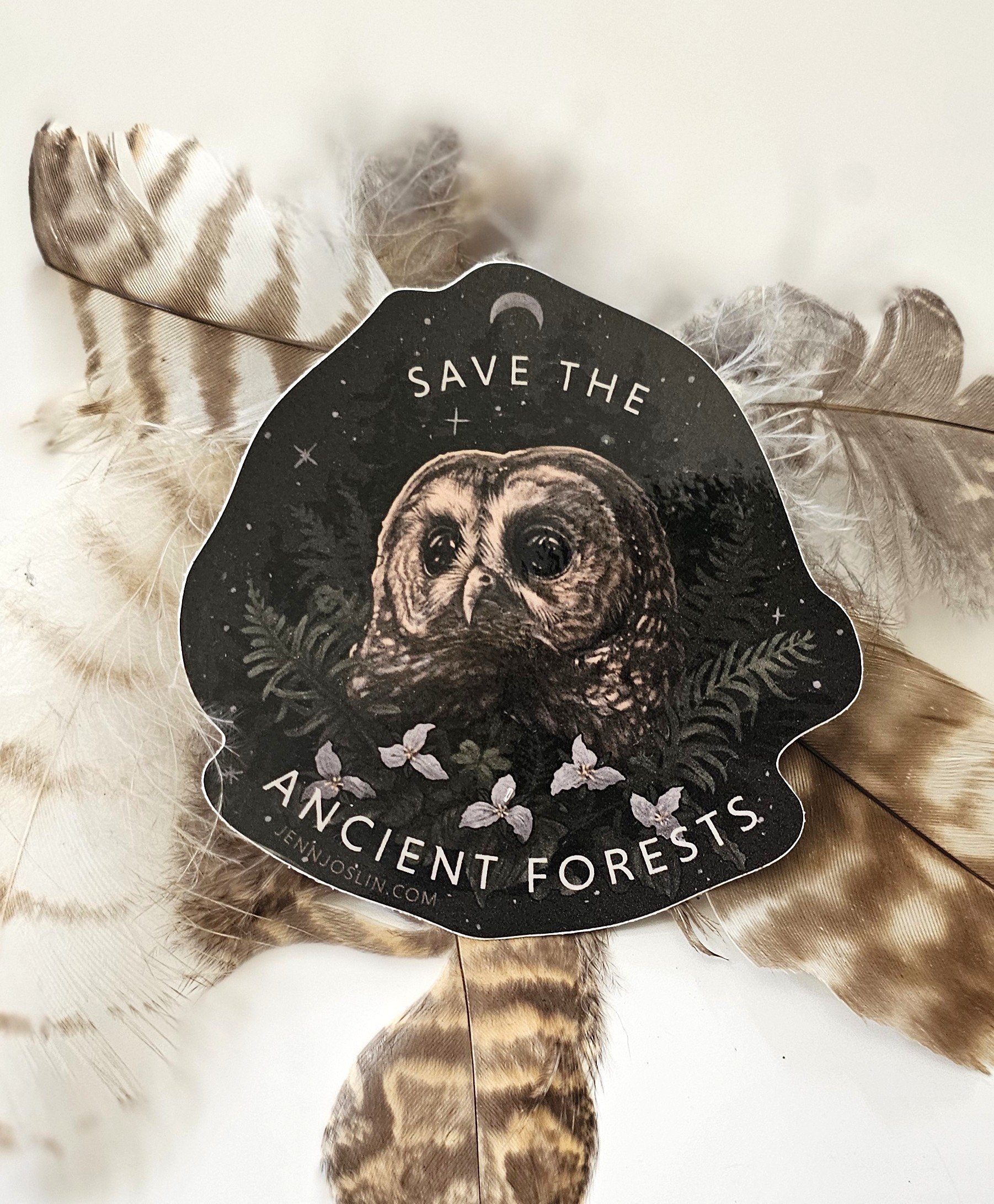 Under a mist-veiled moon, the nighttime forest begins to wake. In a quiet understory brimming with trillium, sorrel, and sword fern, a Northern Spotted Owl surveys her home. Her home: the Ancient Woods. Cedar and loam, frond and fern. The stars shine love on her silent wings as she alights from her perch, a shimmer of feathers soar-sparkling over this verdant, complex, and wholly irreplaceable habitat.